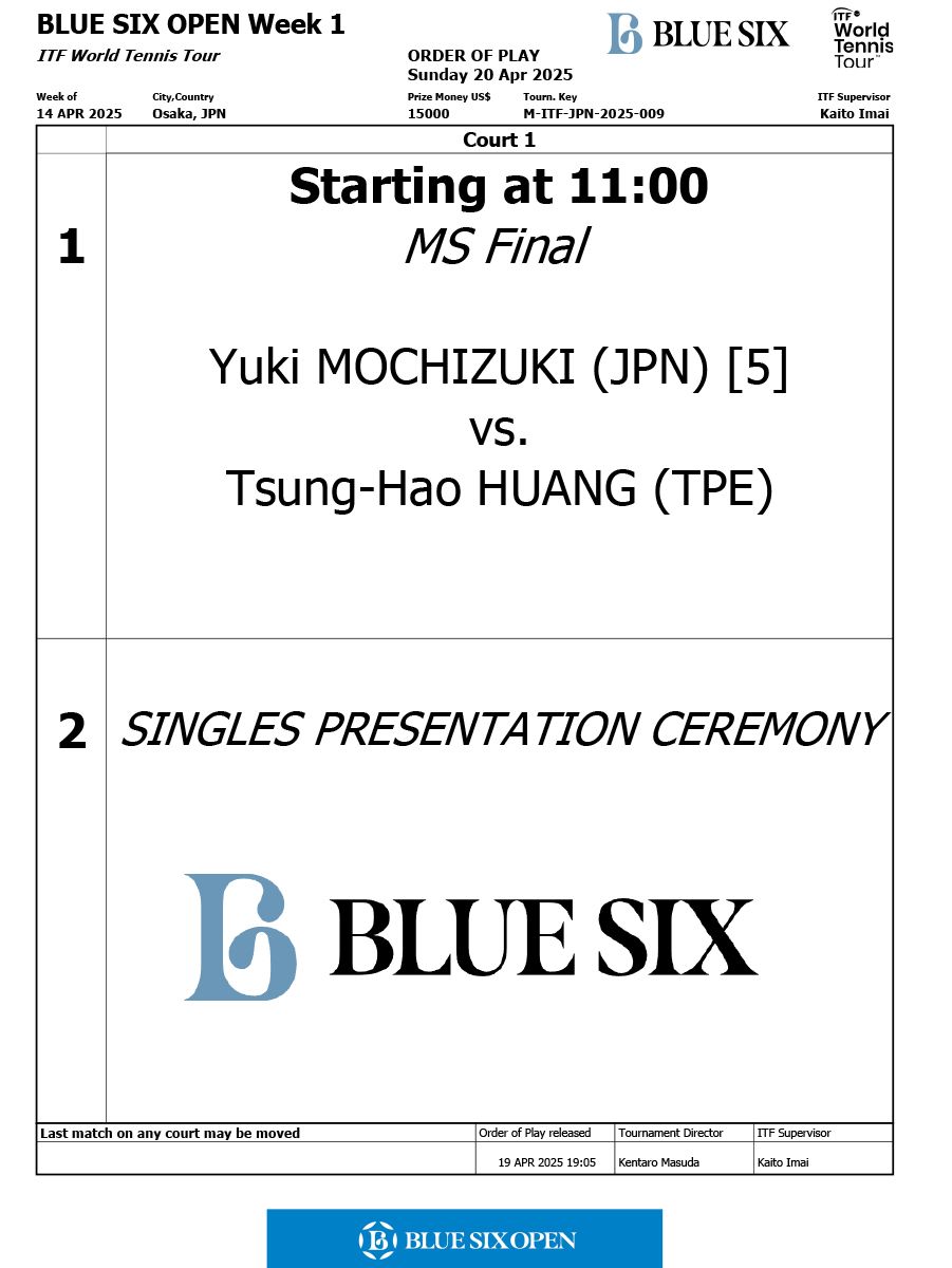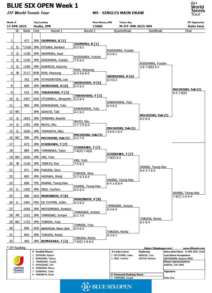 望月勇希がシード勢唯一の4強入り。徳田廉大、楠原悠介、ファン・ツンハオが準決勝へ 内山靖崇主催のITF大会「BLUE SIX OPEN」