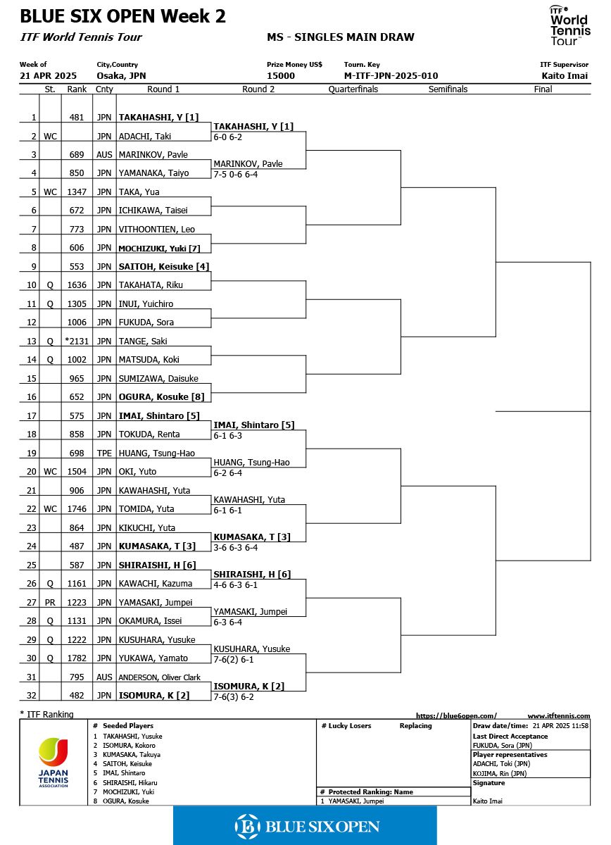 望月勇希は地元大阪で優勝ならず、ファンが2年半ぶりのITFタイトル獲得。内山靖崇主催のITF大会「BLUE SIX OPEN」
