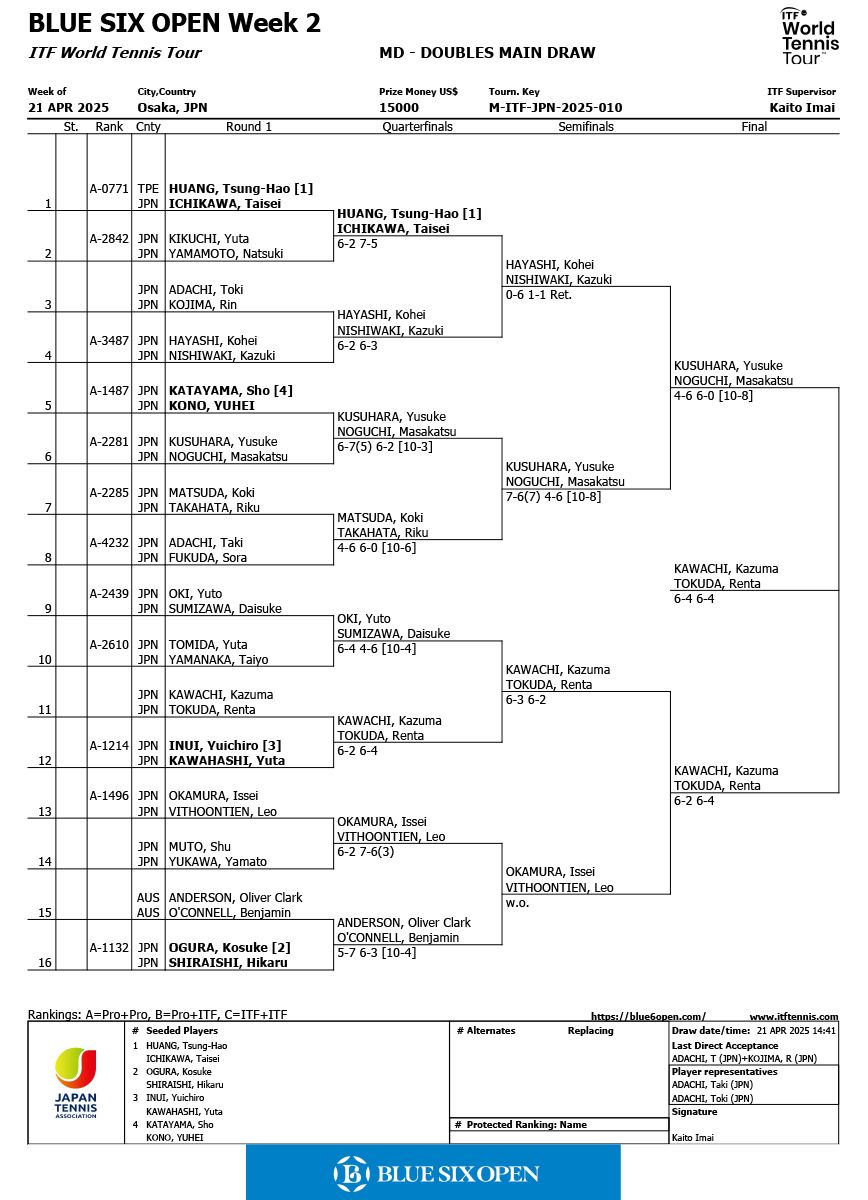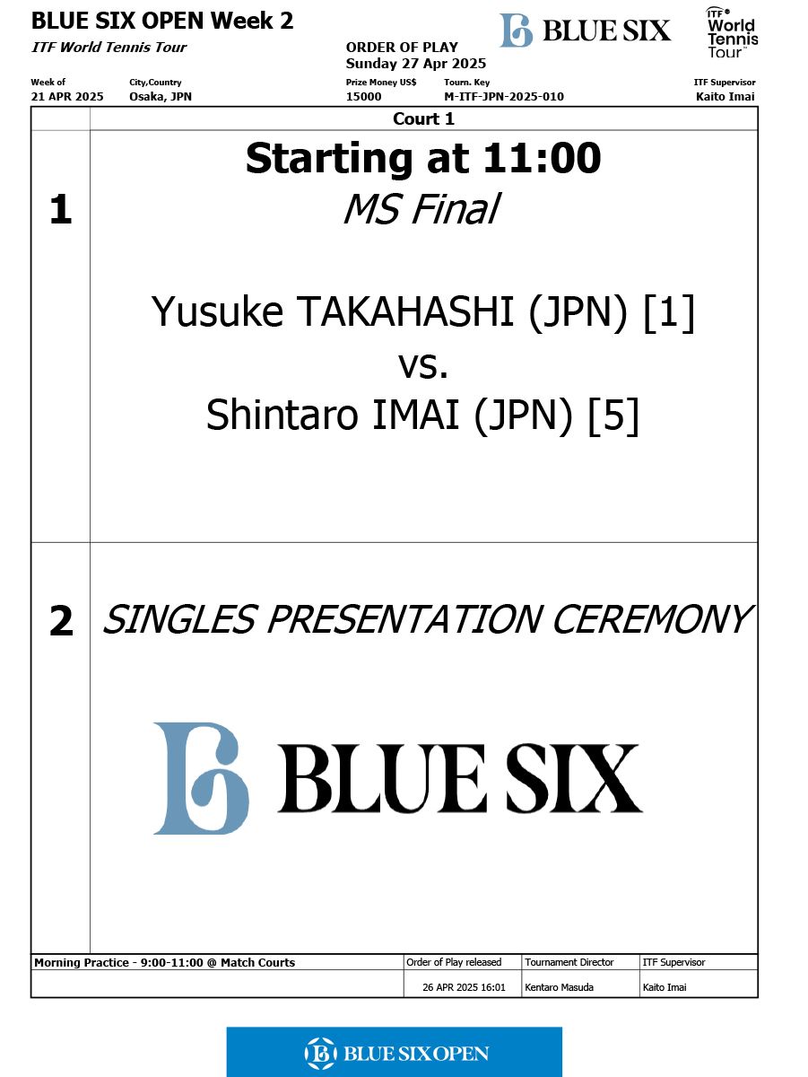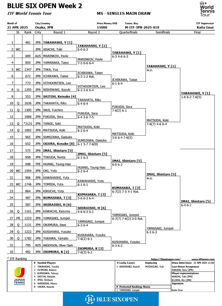 予選勝者の松田康希が2試合連続のタフマッチを制して4強。高橋悠介、今井慎太郎、山﨑純平が準決勝へ 内山靖崇主催のITF大会「BLUE SIX OPEN」Week2