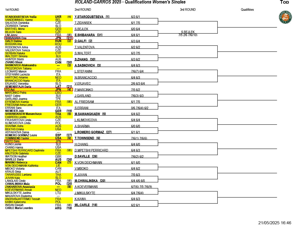 本玉真唯がストレート勝ちで3年連続で予選2回戦に進出。18歳の齋藤咲良は第6シードに接戦で敗れる[全仏オープン]
