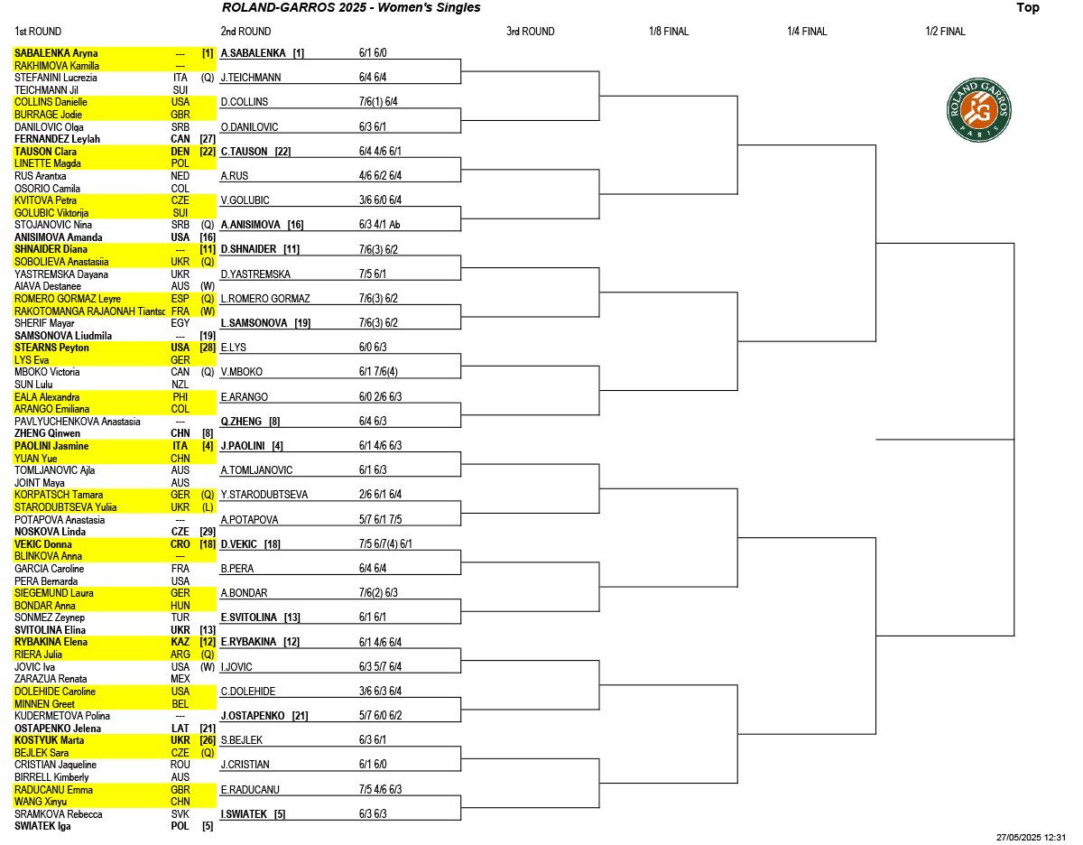 【ドロー】全米オープン2025男女シングルス