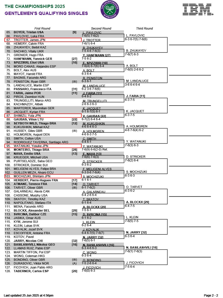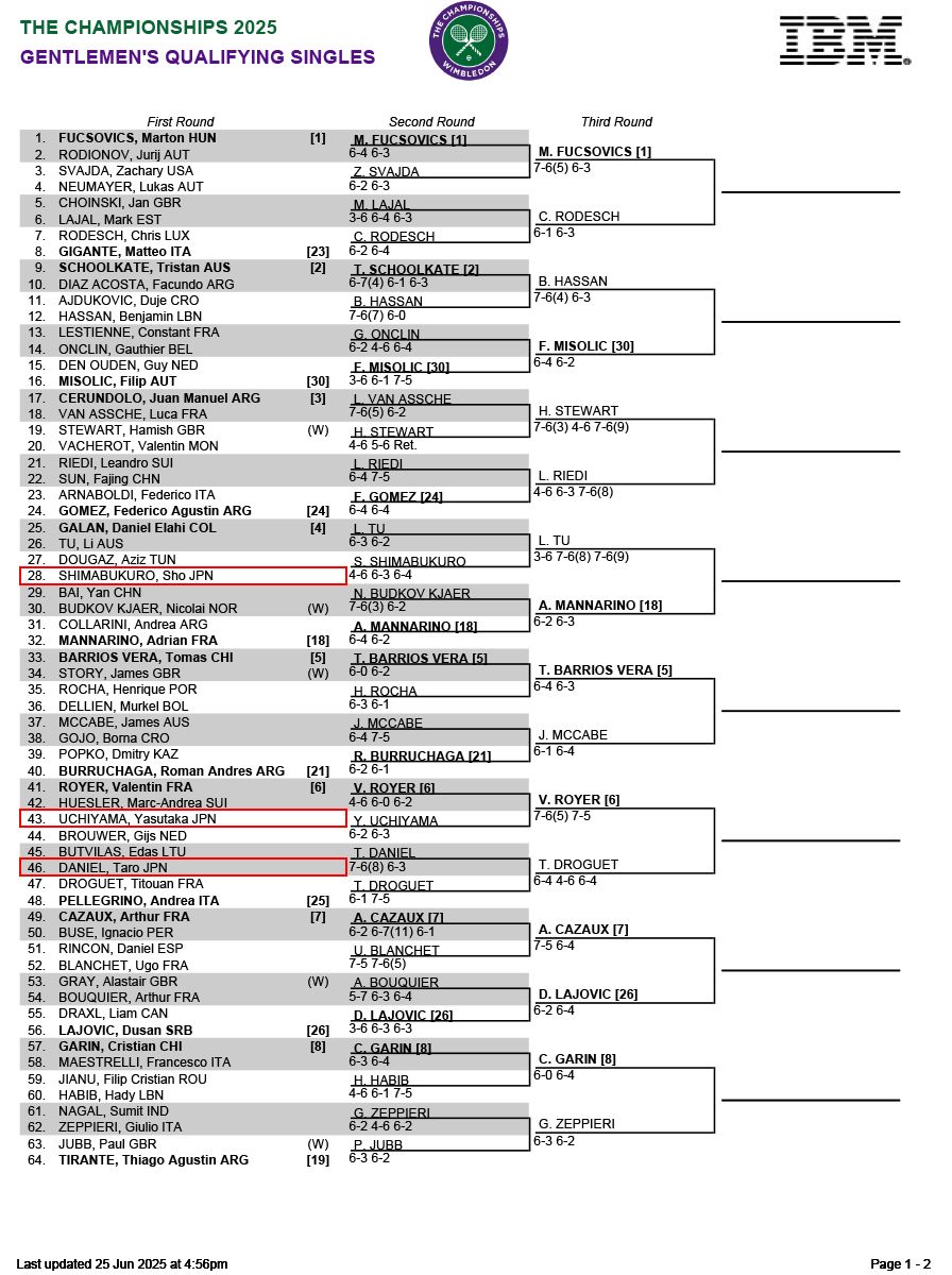 望月慎太郎やダニエル太郎ら日本人男子6名が予選2回戦進出[ウィンブルドン]