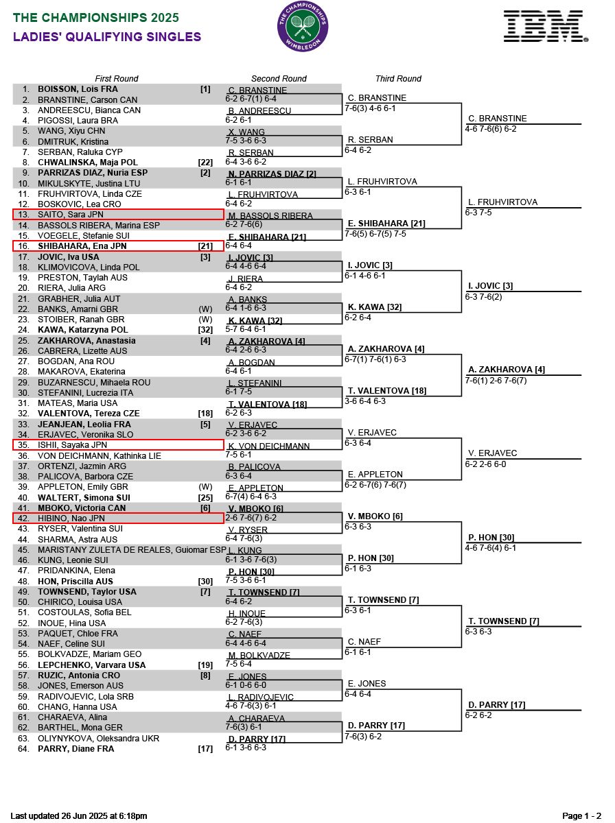 柴原瑛菜、予選決勝で世界150位にストレートで敗戦。自力での本戦入りならず。[ウィンブルドン]