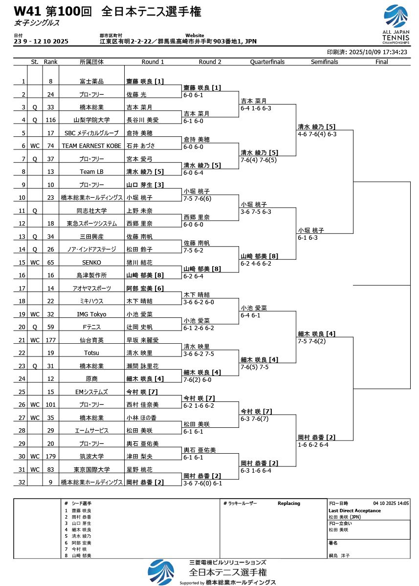 第100回記念大会の「全日本テニス選手権」が開幕!前年準Vの齋藤咲良らが女子シングルス初戦突破