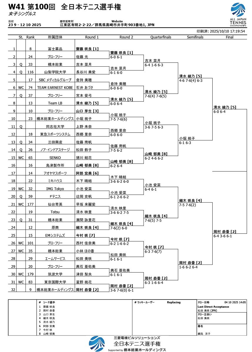 第100回記念大会の「全日本テニス選手権」が開幕!前年準Vの齋藤咲良らが女子シングルス初戦突破