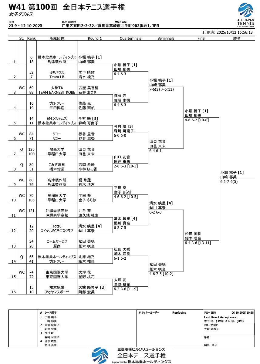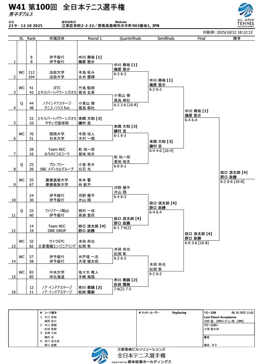 岡村恭香が記念すべき第100回の全日本のタイトル奪取。男子は田口涼太郎と市川泰誠が決勝で対戦 [第100回 全日本テニス選手権]