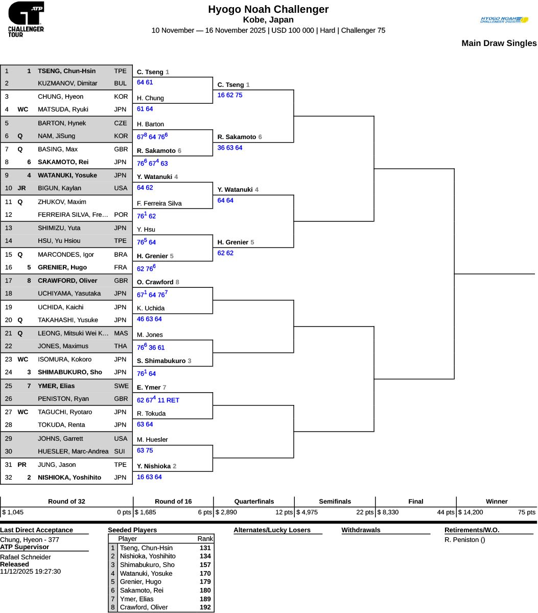 綿貫陽介 ストレート勝ちで準々決勝進出。過去2度Vした好相性の大会に「負けるというのが浮かばない」[兵庫ノアチャレンジャー]