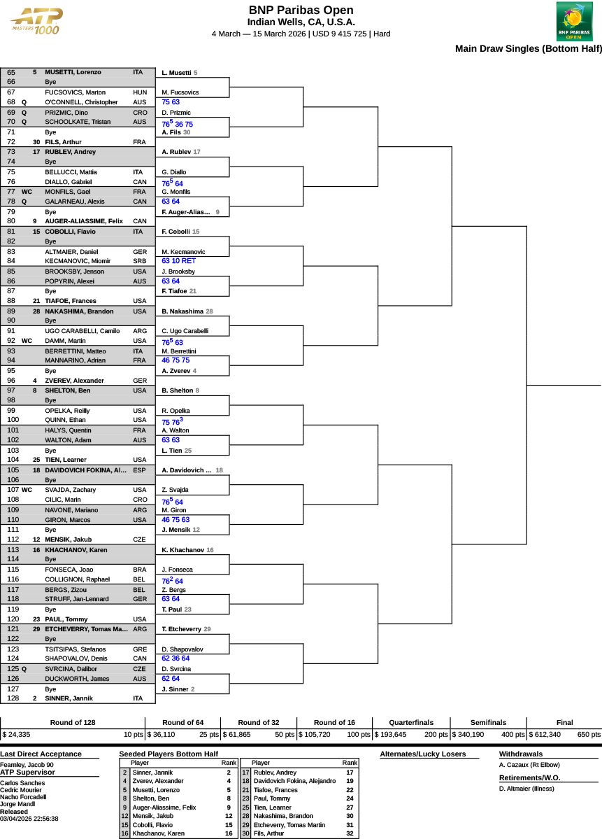 【ドロー】全米オープン2025男女シングルス