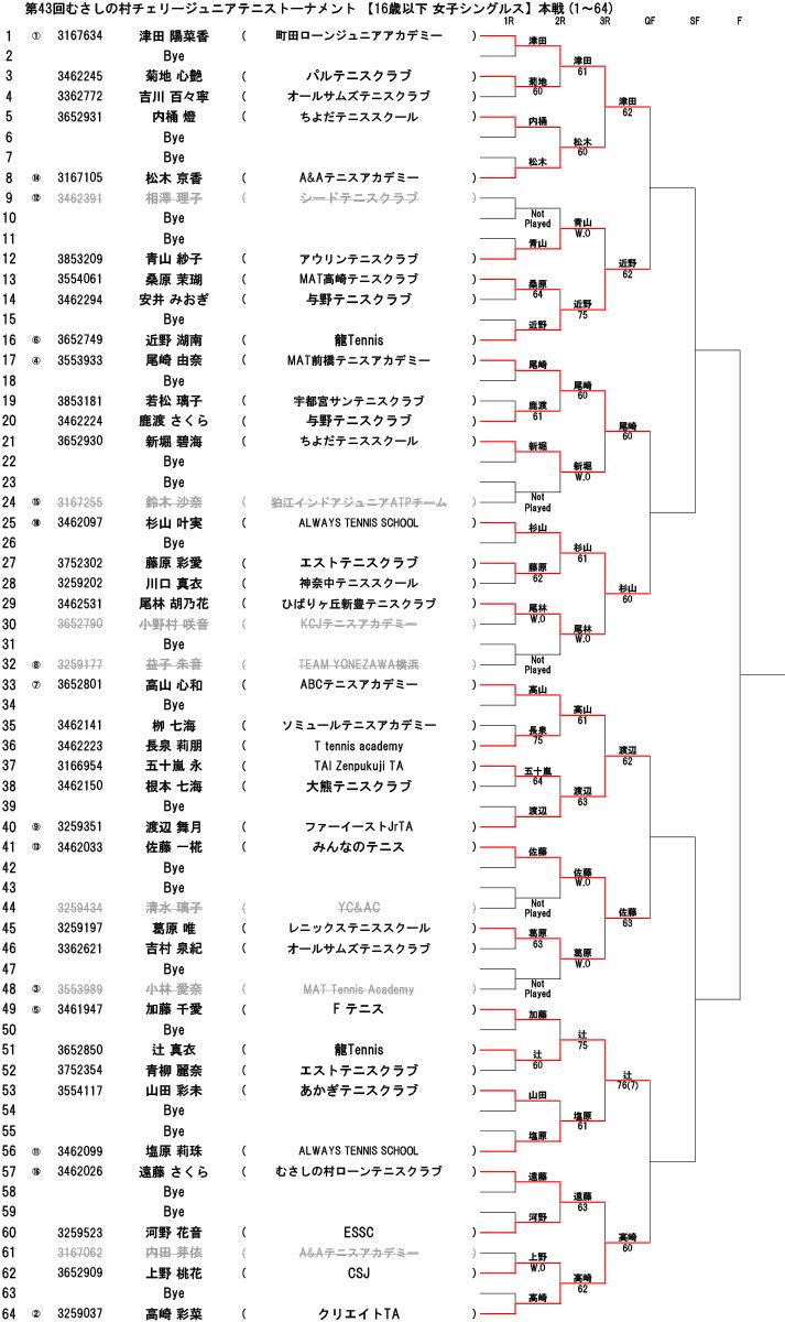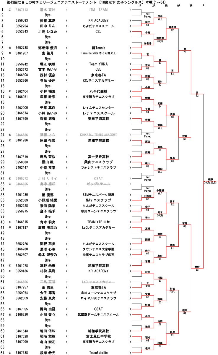 「第43回 むさしの村チェリージュニアテニストーナメント」が開催! 18歳以下女子は草野未来が優勝、16歳以下男女も3回戦まで実施